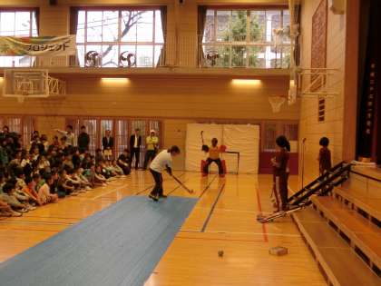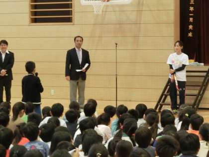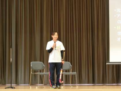元ホッケー女子日本代表でアテネ、北京、ロンドンオリンピックに出場した藤尾香織さんが本校にいらっしゃいました。小学5年生にはじめてから3つのオリンピックに出場するにいたるまでの間に、いかに努力をして成功を得られたかを分かりやすくお話しいただきました。また、ドリブルやシュートの模範演技もしてくださり子どもたちからは歓声が上がりました。子どもたちから出された様々な質問にも丁寧に答えてくださいました。内容がとても充実していてあっという間の1時間でした。