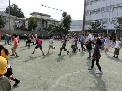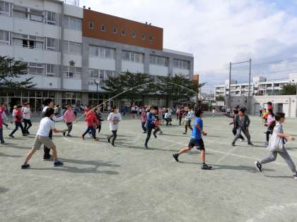 現在、全校で長縄跳びに取り組んでいますが、特に5年生はクラス同士で競い合って盛り上がっています。今日は3組が、1組の出した最高記録を上回って大喜びしていました。お互いに切磋琢磨し合うことで高め合っています。次は2組が記録を塗り替えてくれることを期待しています。どのクラスもガンバレ!!