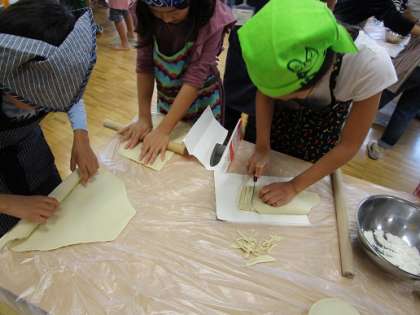 伸ばし終わったら、今度は包丁で、切っていきます。