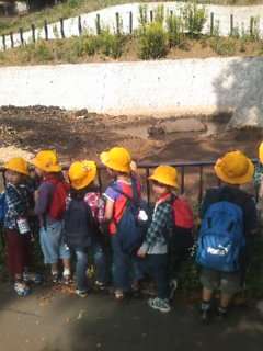 今日は 1、2年生の遠足です。多摩動物園です。インドサイの前です。多摩動物園はいろいろな動物がいます。沢山の本物の動物をみてきます