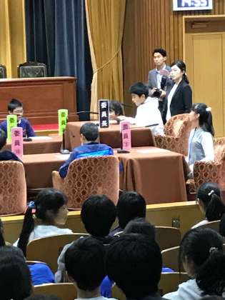 自動車リサイクル法案について話し合っています。委員会の議論が終了後にみんなで議決します。