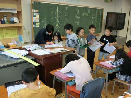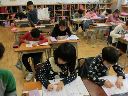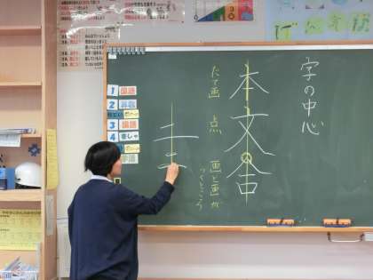 今日から師走に入りました。新年の書き初めに向けて各学級で書写の指導が行われています。2年生までは硬筆、つまり鉛筆で書きます。今日は、字の中心を意識してバランスのよい字を書く練習をしました。子どもたちは一文字一文字丁寧に書き、先生からはな丸をもらっていました。
