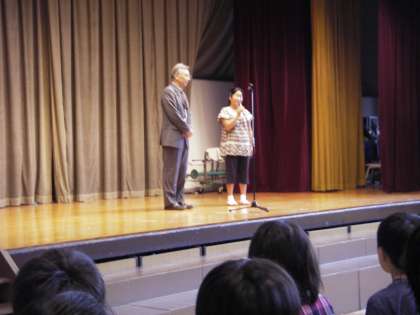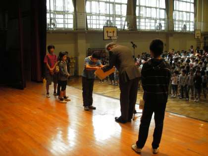 12日(火)の全校朝会は、日本人のノーベル賞受賞のお話の後、子どもたちの表彰がありました。男子バレーに挑戦している5年生が世田谷区の大会で2位と頑張りました。また、JRAの馬の絵展覧会では4人の子どもたちが賞をいただきました。地域の方が馬事公苑に京西小学校の子どもの絵が飾られていますよと教えてくれました。