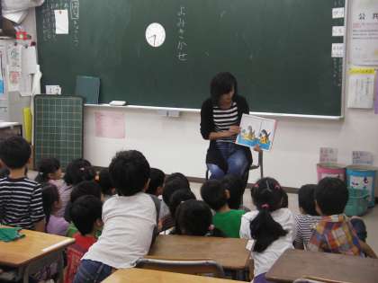 水曜日は朝読書です。1年生の教室をのぞいてみました。3クラスとも保護者の方が読み聞かせをやってくださっていました。真剣に聴いています。