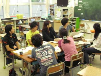 13日は京西小学校に用賀小学校の先生方全員が集まりました。全体説明の後は、1年生から6年生までの各学年分科会と専科分科会に分かれて話し合いが行われました。