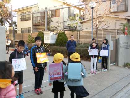 12月18日からの1週間、代表委員会の児童があいさつを活性化させるために自主的に「あいさつ待ってます運動」に取り組みました。用賀小、用賀中との3校学び舎生徒会の時に用賀中の生徒に教えてもらったこの運動を本校でも行いました。寒さが厳しくなってきたこの時期に子どもたち自らがこのような取組を行ったことに感心しました。