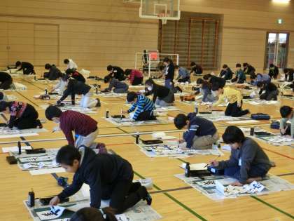 身も心も引き締まるような寒い朝、4年生も学年一同が体育館に集まり書き初めをしました。100人以上の子どもたちが集まっても聞こえてくるのはストーブと外を通る車の音だけ。みんなが集中するとこんなにも静かになるのだと実感しました。様々なものに興味・関心が広がる年頃の4年生が書いたのは「美しい心」。見た目の美しさだけでなくものの考え方や人の生き方の良さも感じ取れる美しい心を養ってもらいたいものです。