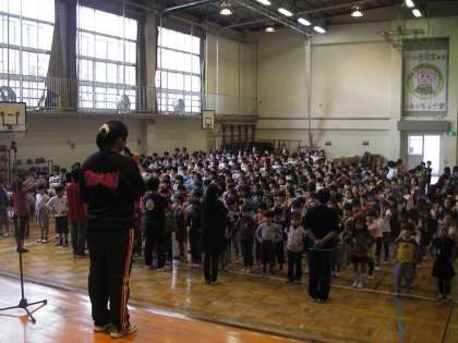 18日、月曜日です。今週もスタートです。子どもたちの集合の時間、聴く態度も立派です。校長からは、イチロー選手は打ったあとバットを丁寧においていく姿から「ものを丁寧に扱うことの大切さ」が話されました。