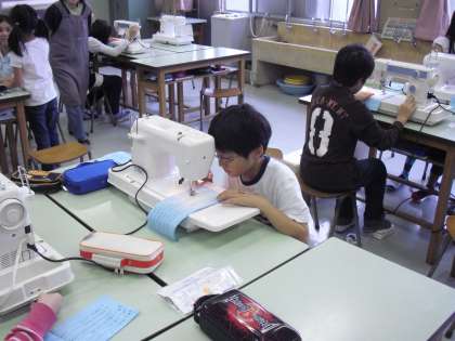 初めてミシンを使う子も多く、若干「怖い」という声も聞こえましたが、みんな手際よく操作していました。