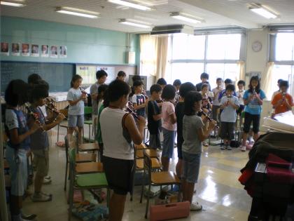 ただ今5年生は、19日(木)の音楽朝会での練習のまっただ中です。ソプラノリコーダーや鍵盤ハーモニカを使って演奏します。みんな夏休みにソプラノリコーダーの練習を頑張りました。とてもきれいな音色です。お時間がありましたら、ぜひご覧下さい。