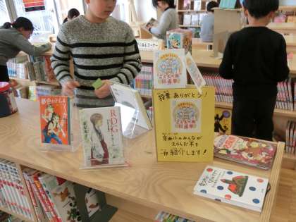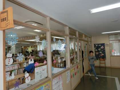 校庭が乾かずに使えない日が続いて休み時間を図書室で過ごす子たちが増えています。そんな図書室には毎月、PTA京西文庫の方が素敵な飾り付けをしてくださっています。今月は冬らしい雪の結晶や雪だるまなどの飾りです。また、図書室イベントでは昨年好評だった「本のおたのしみ袋」を今年もやっています。借りた子どもはドキドキしながらカバーを開けることになります。また、本に親しむ子供が増えそうです。