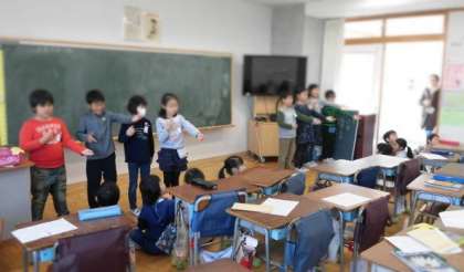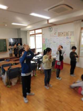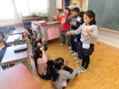 「前のところまでやってみるから、まずは見ていてね。」と2年生。「くぐってふ〜り〜むけば」で、つい全員一緒に振り向いてしまうところが実にかわいらしい一年生です。