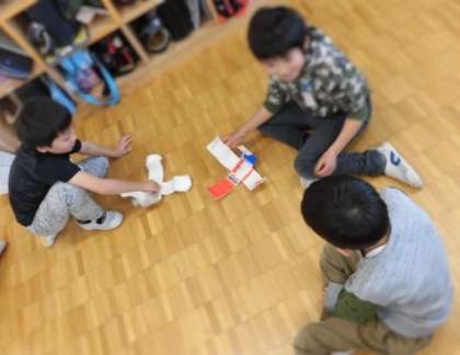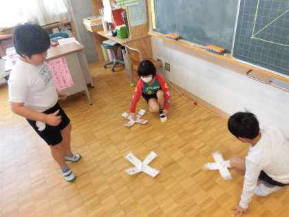 作り方の説明文を読み取り、コマ作りをしました。そして、「コンテストをしよう」の学習でみんなで決めたコンテストは「時間の長さコンテスト」。1回戦はリーグ戦で行い、2回戦からはトーナメント戦で行いました。決勝戦では、学級全体で決勝進出選手の応援。大声援でした。負けたことに悔しさを感じた子もいるのでしょう。休み時間にチャンピオンに挑んでいる子が何人もいました。