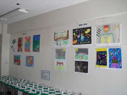 用賀中学校文化祭では、合唱大会と同時に作品も展示されています。そこに作品交流として京西小学校、用賀小学校の図工作品が展示されているのです。3校の交流は様々な形で行われています。