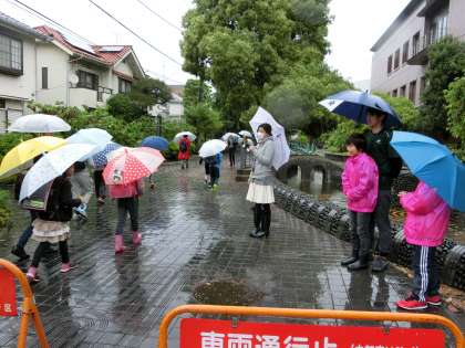 あいにくの天気の中、雨にも負けず、風にも負けず、寒さにも負けずにあいさつ当番の子どもや教職員、PTA役員の方々が用賀の町にあいさつの声を響かせました。登校してくる子どもたちも傘を差しながら大きな声であいさつを返す子どもがたくさんいました。長年続いているこの取組のおかげで気持ちの良いあいさつができる京西の子どもがたくさん育っています。