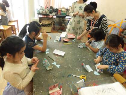 本日はお家の方へのプレゼント作り。カードケース、ペン立て、ペントレーを作りました。「この模様、(お家の方が)好きなんだよね。」「明日のプレゼントにしよう。」とかわいらしいつぶやきがたくさん聞こえました。子どもたちは楽しそうに作り♪、うれしそうに帰って行きました♪♪