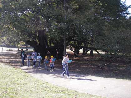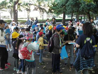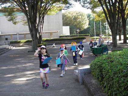 11月6日(土)の「このゆびとまれ」はウォークラリーでした。グループごとに地図を見ながら砧公園に作られたルートをまわります。地図は普通の地図ではありません。52箇所の場面場面の図を見ながら進む方向を判断します。