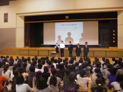 8日(月)の午後は京西小学校、用賀小学校の6年生が用賀中学校へ学校訪問をしました。体育館で生徒会が中心となり学校説明がありました。各クラブの紹介もありました。