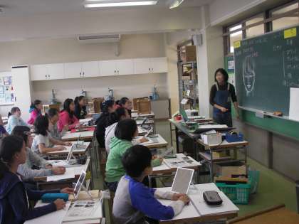 後半は、体験授業です。国語、社会、数学、理科、英語、音楽、美術、保健体育、技術の授業に参加しました。ちょっと緊張していた6年生でした。