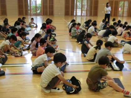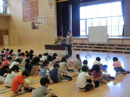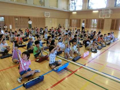 初めて鍵盤ハーモニカを習う1年生のためにスズキ楽器から派遣されるゲストティーチャーをお招きしてホースの付け方や音の出し方、指遣いなどの基本的なことを教わりました。また、先生が素敵な演奏を聴かせてくれたので子どもたちは自分も吹いてみたいという意欲をかき立てられました。これからたくさん練習して上手に吹けるようになってほしいものです。