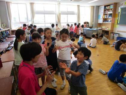 2年生は今日、はねつき・たけうま・こまなどの昔遊びを体験しました。
