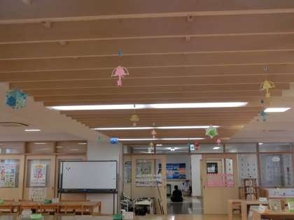 今年も京西文庫プロジェクトの方々が季節に合わせた飾り付けをしてくれています。5月は運動会、6月は梅雨をイメージした飾り付けをしてくれました。それに合わせて本の紹介コーナーにもふさわしい本を置いています。おかげで図書室がとても素敵な空間になっています。
