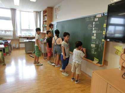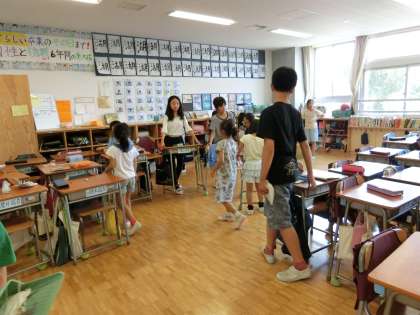「6年生は、ほうきを右から左にきちんと掃けていたよ。」「みんな静かに掃除をしていたよ。」「黒板のきれいな消し方を教えてもらったよ。」「床雑巾は、曲がらずにまっすぐすすんでいたよ。」などと、見つけたことを教えてくれました。その後の掃除の時間に大変役に立ちました。6年生、ありがとうございました。