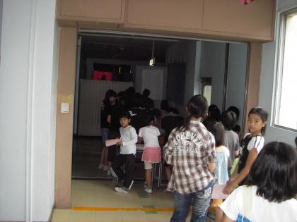並んでいるのは、お化け屋敷にはいるために並んでいます。人気です。
