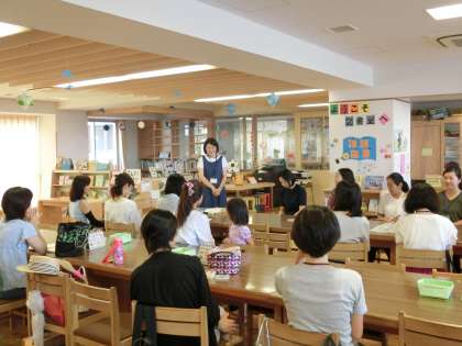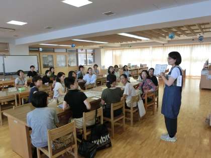 今年から本校の図書室で働いている長嶺司書は、新聞に書評を掲載するほど子どもの本の知識が豊富です。そこで、京西文庫の保護者の方々が長嶺司書から話を聞く会を企画しました。初回にもかかわらず約20名の方が参加しました。「絵本のページをめくると新しい世界が広がる」「大人になって子どもの頃に読んだ本の一節を思い出すと素敵な気持ちになる」など、本の魅力についてたっぷりと語ってくれました。今回、好評を得られたので2学期にも開催することになりそうです。次は是非ご参加ください。