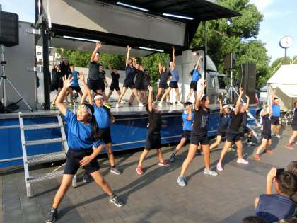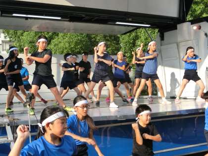 用賀駅前では夏のこの時期になると毎年「ようがサマーステージ」が行われます。そのステージで5年生有志がソーラン節を踊るのが恒例となってきました。「どっこいしょ!」と夏の暑さを吹き飛ばすくらいの大きなかけ声を出しながら元気いっぱい踊りました。とてもかっこよかったです。
