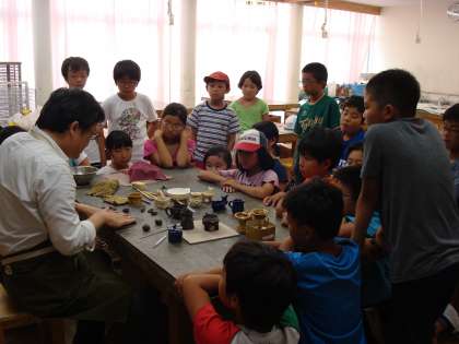 図工室では5,6年生を対象に陶芸教室が行われました。