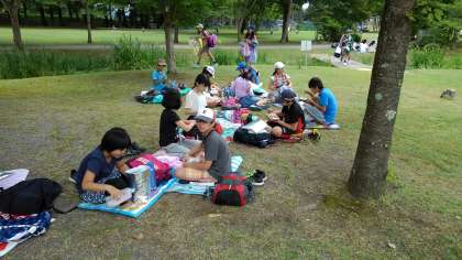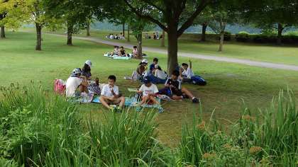 だいや川公園に着きました。おいしいお弁当を食べています。