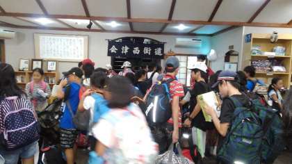 東観荘に着きました。大きな荷物を持って、部屋に向かいます。