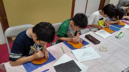 日光彫り体験です。職人さんのデモンストレーションを見て、いよいよ本番です。