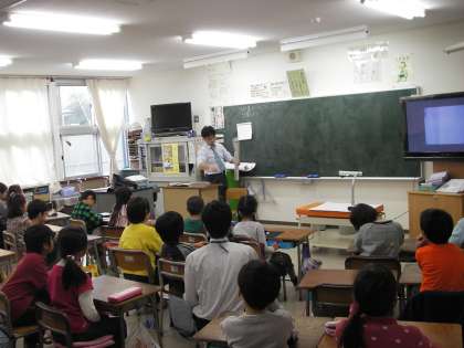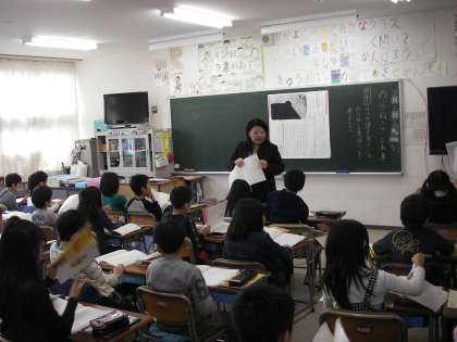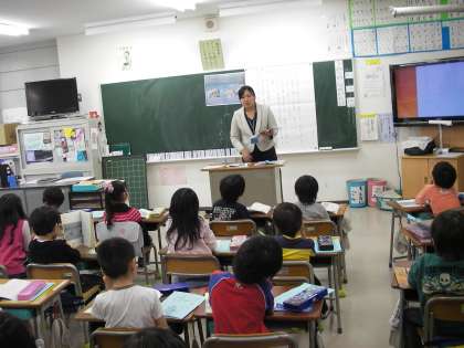 1年は堀先生国語「うみえのながいたび」2年生は村上先生、TTで清水先生算数「かけ算」3年生は増田先生国語「のらねこ」の授業です。子どもたちはしっかりと授業に参加しています。