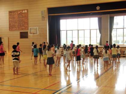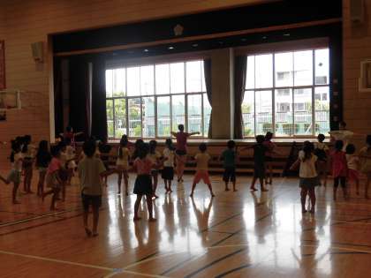 暑さを吹き飛ばすように、元気いっぱい体操をしています。