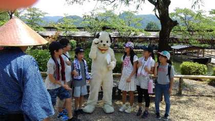 日光江戸村のキャラクターと記念撮影です。