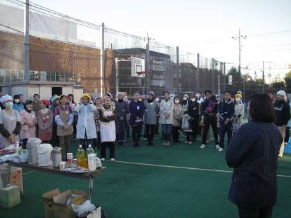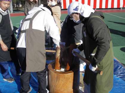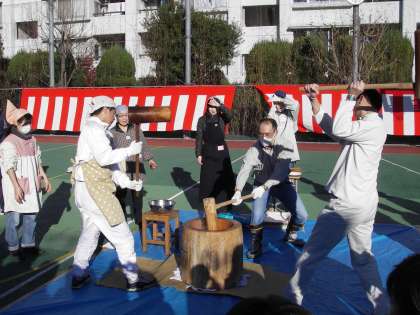 快晴のもと、12月4日(土)は開校記念もちつき会でした。朝まだ暗い6時過ぎから地域の方商店街の方等々がかまどに火を入れてくれました。PTAの方々も早朝から準備にかけつけてくださいました。