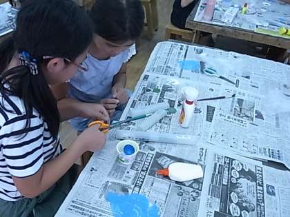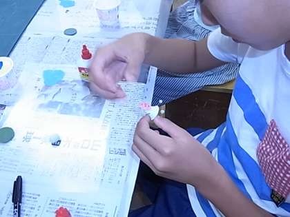 アクリル絵の具で色をぬったり小さな手足をつけたり、細かな作業でしたが、みんな集中して作品作りに取り組みました。