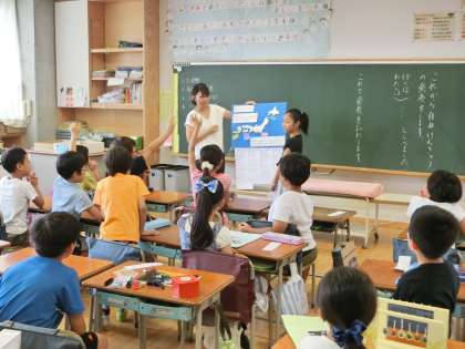 暑すぎた夏休みが終わり、みんなの元気な声が学校に響き渡りました。今日から2学期のスタートです。始業式では5年生の代表児童が「時間を有効に使うこと」、「友情を深めること」などをがんばると立派に発表しました。新たに5名の友達が京西さくら組に加わりました。早くみんなに馴染めるといいですね!久しぶりに入った教室では新鮮な気持ちで夏休みの自由研究について発表していました。