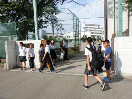 2学期のおはようコミュニケーションが始まりました。用賀の街角に子どもや先生たちが立って道行く人に「おはようございます!」と大きな声であいさつをしました。本校の校門には用賀中学校の生徒や先生方が来て小学生とあいさつを交わしてくれました。用賀小学校でも同じように取り組んでいます。いつもより大きなあいさつの声が用賀の町に響き渡りました。