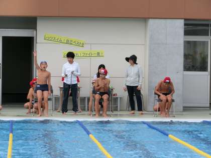 入学した年の夏、顔を水につけるところから始めた子どもたちが、小学校の水泳の集大成としてクロール、平泳ぎ、背泳ぎから1つ選んでタイムを計測しました。あいにくの天気の中、みんな立派に泳ぎ切りました。6年間の成長には目を見張るものがありました。多くの保護者から応援をいただき、頑張るエネルギーとなりました。本当にありがとうございました。