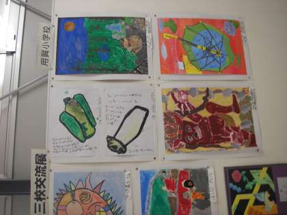 用賀中学校、用賀小学校の児童生徒の作品が京西小学校に紹介されています。となりどおしの学校が身近に感じられる取り組みとなっています。