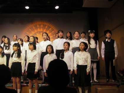 11日(土)上用賀アートホールで「ようがクリスマスコンサート」がありました。そこに京西小学校合唱団が参加しました。発表した曲は「宝島」「君の笑顔が好きだから」の2曲です。38名がステージに並びました。いままで練習してきた成果を披露出来ました。素敵な歌声でした。