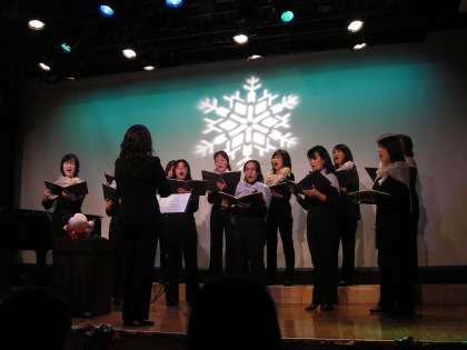 続いて京西小学校PTAコーラス部が出演しました。曲目は「夢みたものは」「大切なもの」「トトロメドレー」「クリスマスソング」です。PTAコーラスフェスタでも歌声を聞きましたが、素晴らしい素敵な、鍛えられた歌声で感激しました。