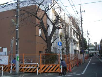 写真に写っている校舎のまわりは完成後もフェンス、塀はありません。木が植えられるだけとなります。1月には完成です。