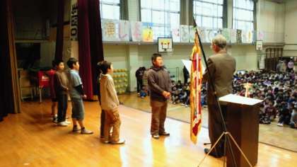 13日の全校朝会では、うがい・手洗いを励行しノロウイルスを予防しようというお話の後、子どもたちの表彰がありました。野球、用賀ペアーズです。4年生5年生6年生のそれぞれの学年のチームが優勝、準優勝したのです。素晴らしい優勝旗、優勝カップ、優勝盾、賞状が紹介されました。5年生の児童は最優秀選手賞の賞状を頂いてきました。