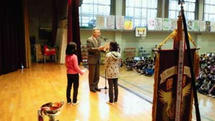 13日の全校朝会では、鎌倉俳句の入選者の表彰もありました。