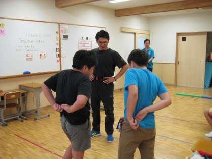 2チーム目は、先生のテンションに必死についていき、チームメイトをほめたり応援したりして、クリアしました。