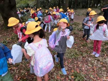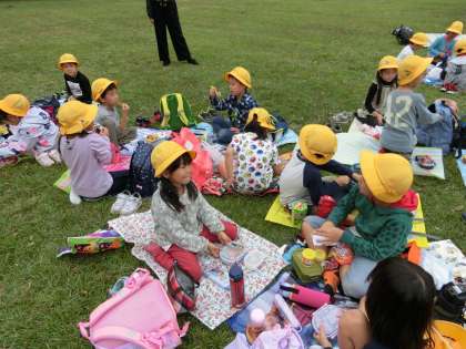 小学校に入学して初めての遠足は、みんなで歩いて砧公園に行きました。公園ではどんぐりや松ぼっくりを拾い、秋をいっぱい感じてきました。また、遊具や芝生の上で体をいっぱい動かして友達と仲良く遊びました。たくさん遊んだ後はお家の人が用意してくれた弁当を美味しく食べました。空模様が怪しくなってきたので、おやつは少しにして予定より早めに帰ってきました。先生の話をよく聞き、安全に気を付けて帰ってくることができました。